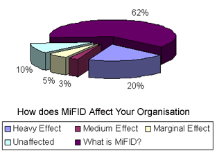 We first brought news on the MiFID on 23rd November 2005. There was a major set of press articles and much informed comment. At that point we asked you what effect MiFID would have on you. After a month the overwhelming reaction, 62%, is "Huh? What is it?"